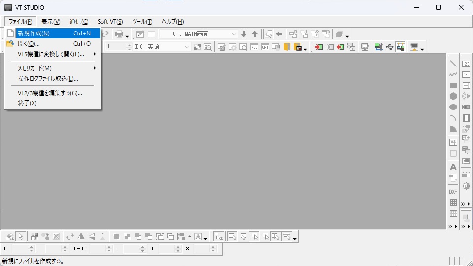 「ファイル」「新規作成」とクリックし「VT機種設定」のダイアログを開く。