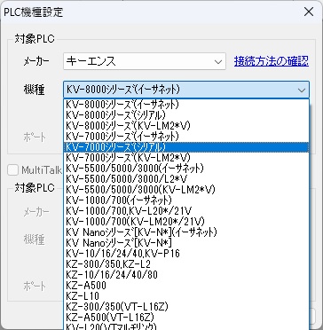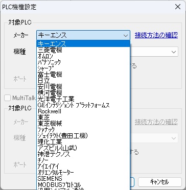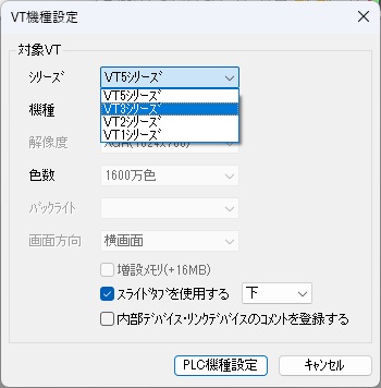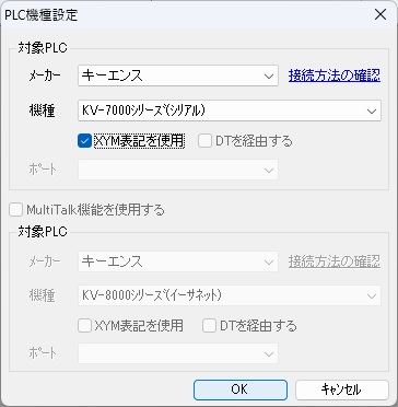 「PLC機種設定」をクリックし「PLC機種設定」ダイアログを開く。