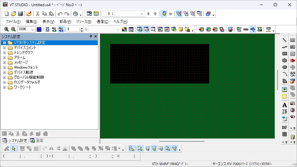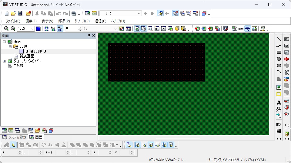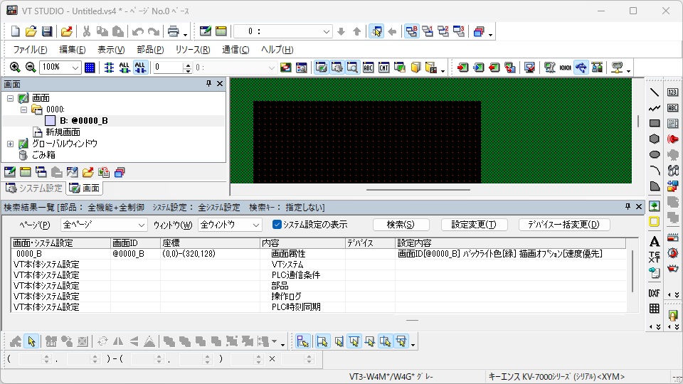 ここまでで本説明で使用している実機構成に合ったタッチパネルデータが作成されました。ここで作成されたタッチパネルデータを本説明で使用しているタッチパネルに書き込むことでPLCから制御できるようになります。以降このタッチパネルデータをベースに説明を進めていきたいと思います。