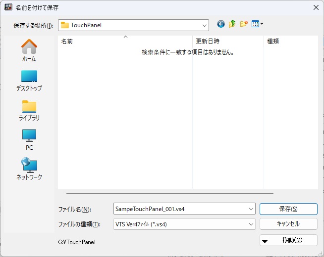 「ファイル」「名前を付けて保存」とクリックしタッチパネルデータを保存する。